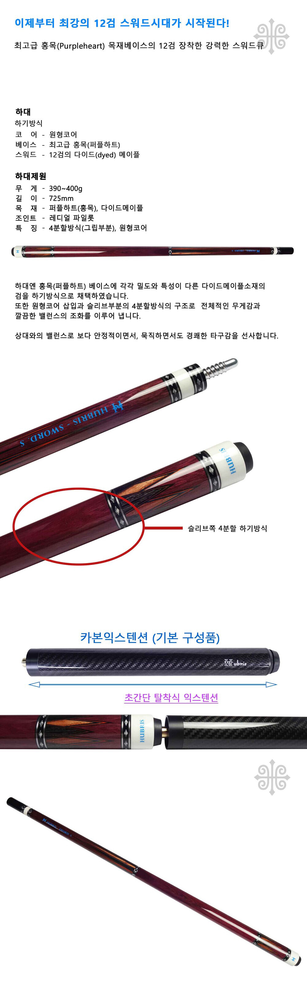 휴브리스 S12검하기-06 (퍼플) 당구큐대
