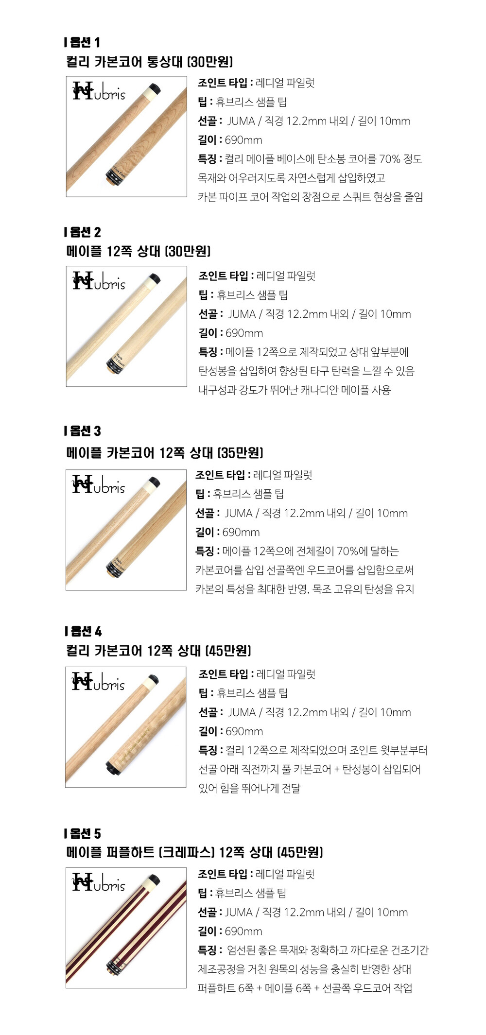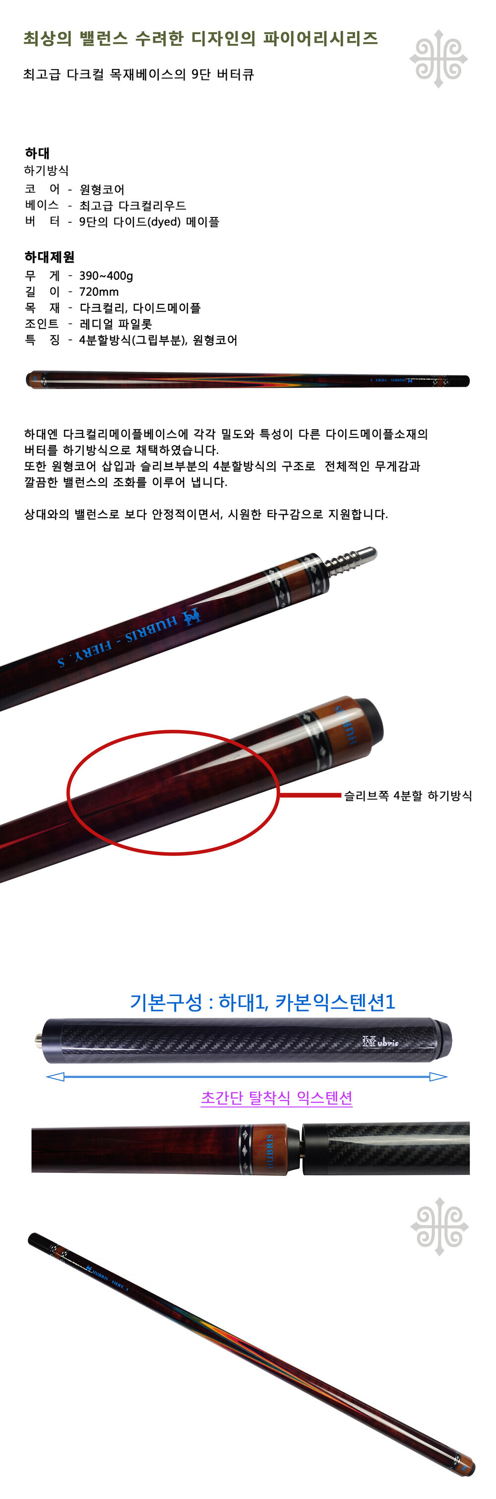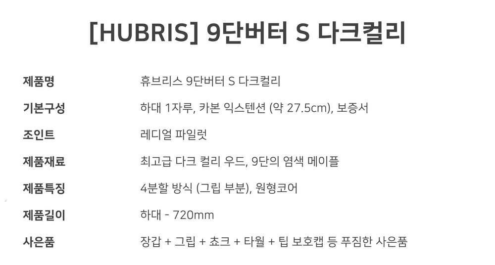 휴브리스 9단버터 S (다크컬리) 당구큐대